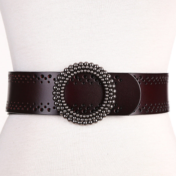 Product information: Product Category: Waist Seal Applicable gender: female Applicable age: adult Material: Leather Cortex features: two-layer cowhide Processing method: Lacquered Popular elements: carving Color: black, red, green, brown, brown...